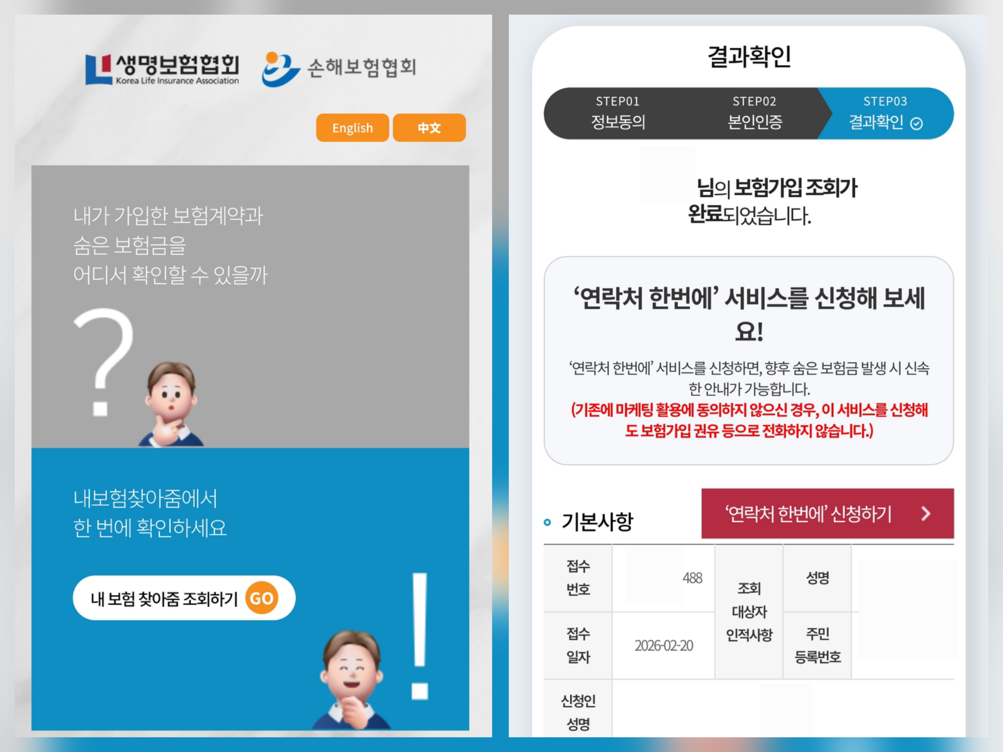'내보험찾아줌(cont.insure.or.kr)'은 생명보험협회와 손해보험협회에서 공식적으로 공동 운영하는 아주 안전하고 100% 무료인 국가 공인 서비스입니다.