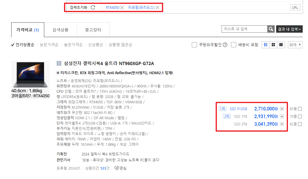 삼성과 LG는 포기하고 외국 브랜드 제품으로 찾기 시작하자 범위가 넓어지게 되었다.